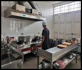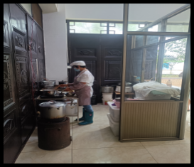 2、后廚干凈衛(wèi)生,餐廚垃圾日產(chǎn)日清,從業(yè)人員工作衣帽穿戴整齊,食品加工規(guī)范操作。