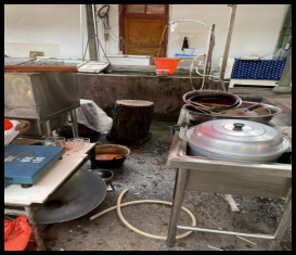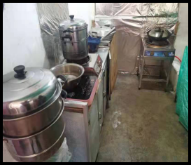 4、餐飲具清潔區(qū)及食物粗加工區(qū)域環(huán)境衛(wèi)生差,餐廚用具清洗不及時(shí),泔水桶未帶蓋。