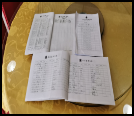 3、進(jìn)貨臺(tái)賬、消毒臺(tái)賬、職工晨檢臺(tái)賬、健康檔案、有害生物消殺記錄、外購(gòu)餐飲具臺(tái)賬記錄規(guī)范齊全。