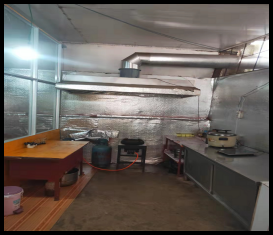 2、后廚各類物品擺放整齊,加裝三防設(shè)施、帶蓋垃圾桶。灶臺(tái)、地面油污清理干凈。