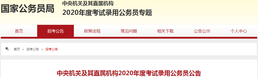 中央機關(guān)及其直屬機構(gòu)2020年度考試錄用公務(wù)員公告