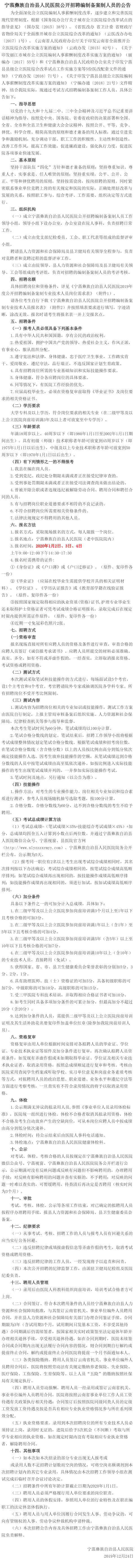 麗江市寧蒗彝族自治縣人民醫(yī)院公開招聘編制備案制人員的公告