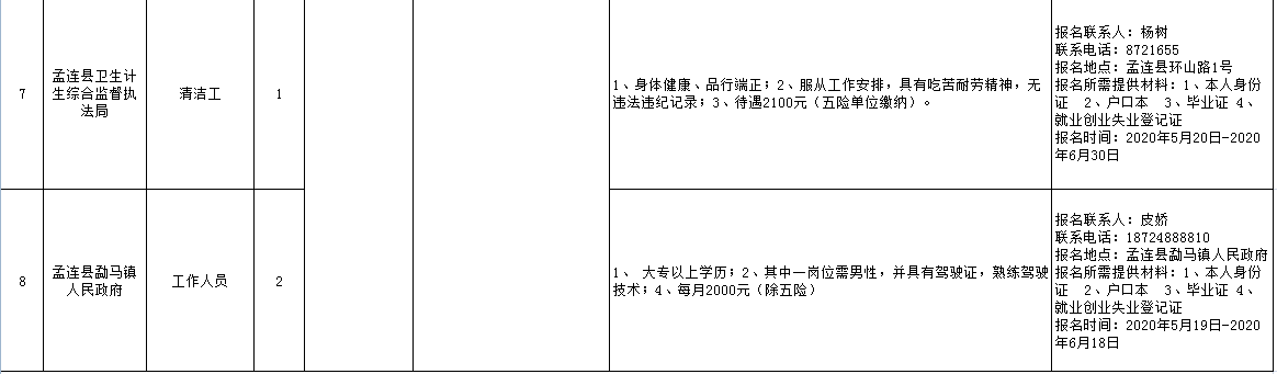 孟連縣人力資源和社會保障局關(guān)于2020年第一批孟連縣城鎮(zhèn)公益性崗位招聘簡章的公告